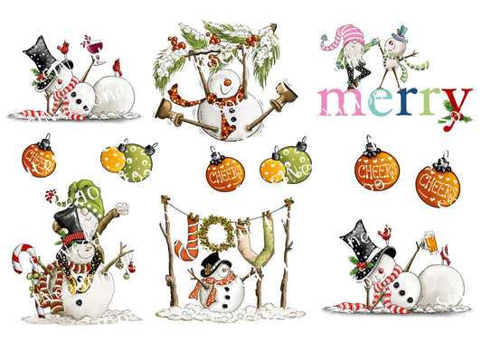 Christmas Snowman Wine & Beer Waterslide Decals - Ornament-Size Options Available
