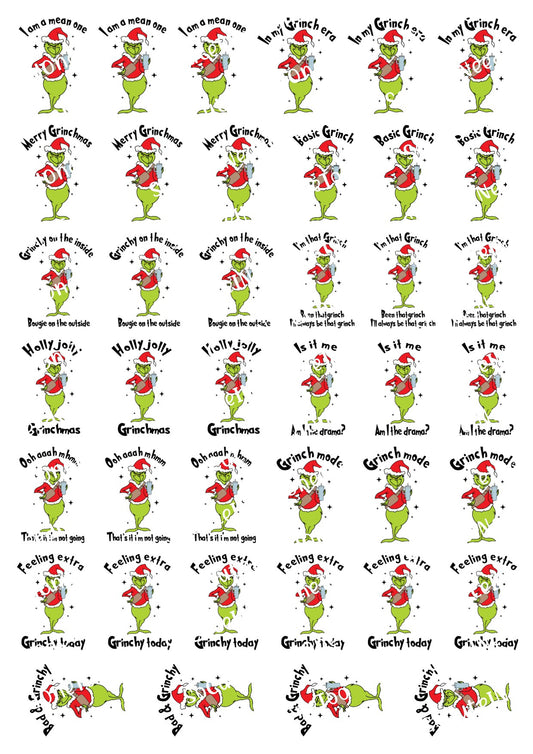 Grinch Standing with Favorite Sayings Waterslide Decals - 2 inch & 1.5 inch