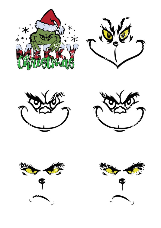 Grinch Faces Waterslide Decals - Multiple Expressions & Sizes Available